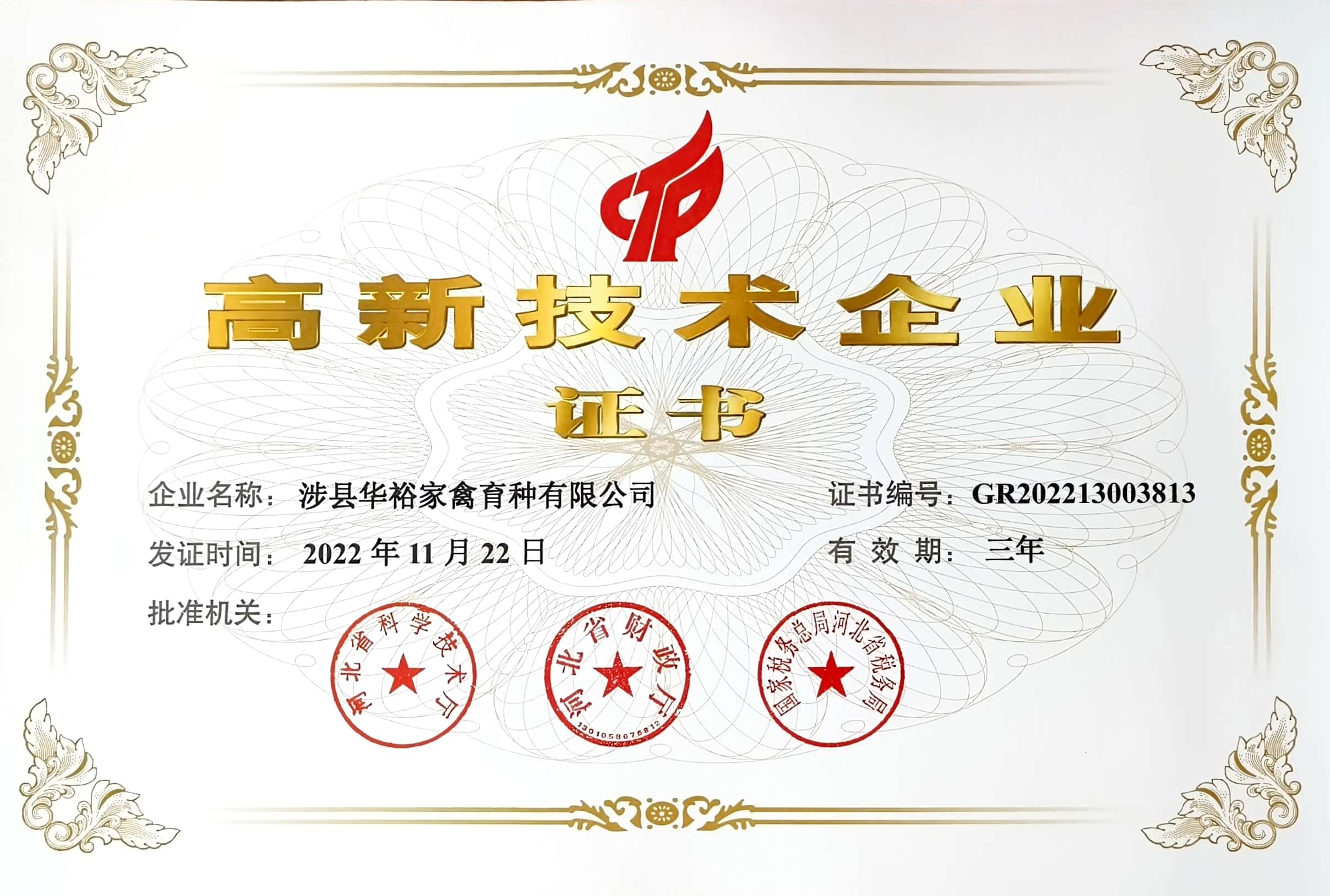 喜报|涉县华裕家禽育种有限公司荣获“高新技术企业” 称号